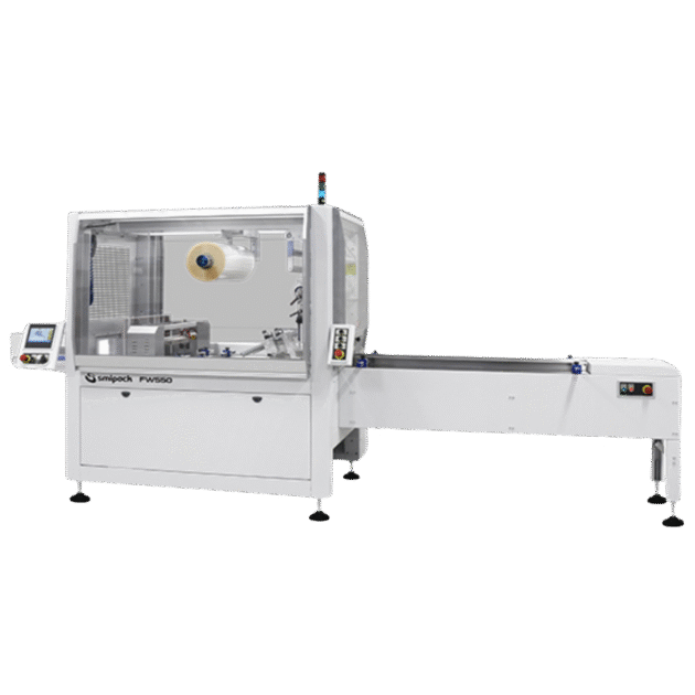 The SMIPack FW550 Flow Wrapper has a Maximum Production Rate of 200 Products Per Minute