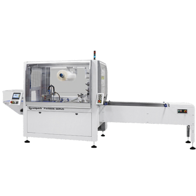 SMIPACK FW550 SERVO AUTOMATIC FLOW WRAPPER WITH BOX MOTION SEALING AND UPPER FILM REEL
